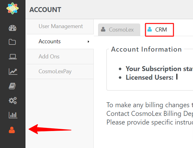 - The Account Information will tell you about Your Subscription Status and the number of Licensed Users of the CRM.