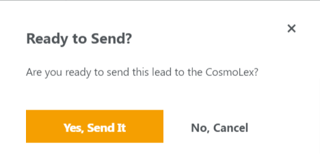 If you are ready, click Yes, Send it. If you still wish to make changes, click No, Cancel. - If you click Yes, the system will create a new Contact and Matter within CosmoLex.