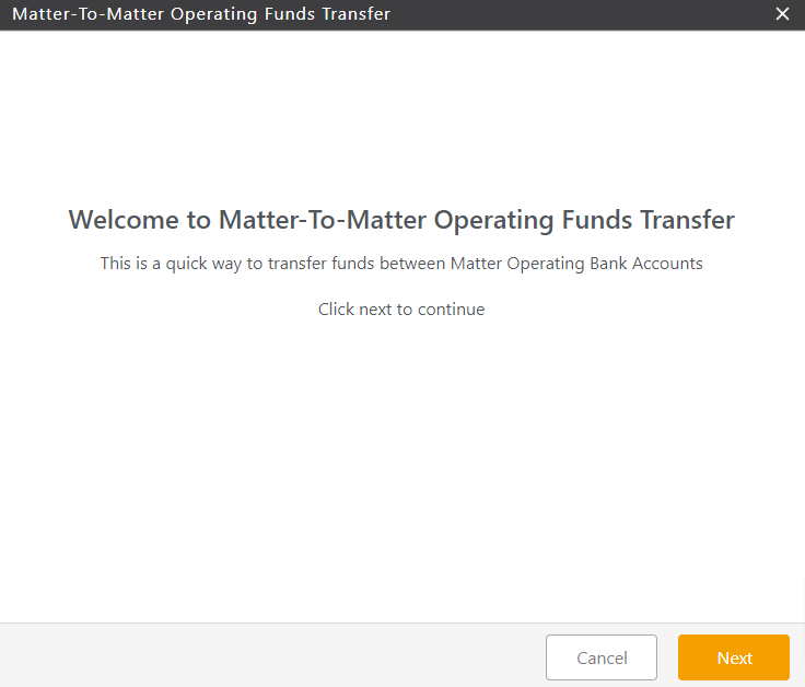 - In the lower right corner of the Matter to Matter Operating Funds Transfer screen, click Next.
