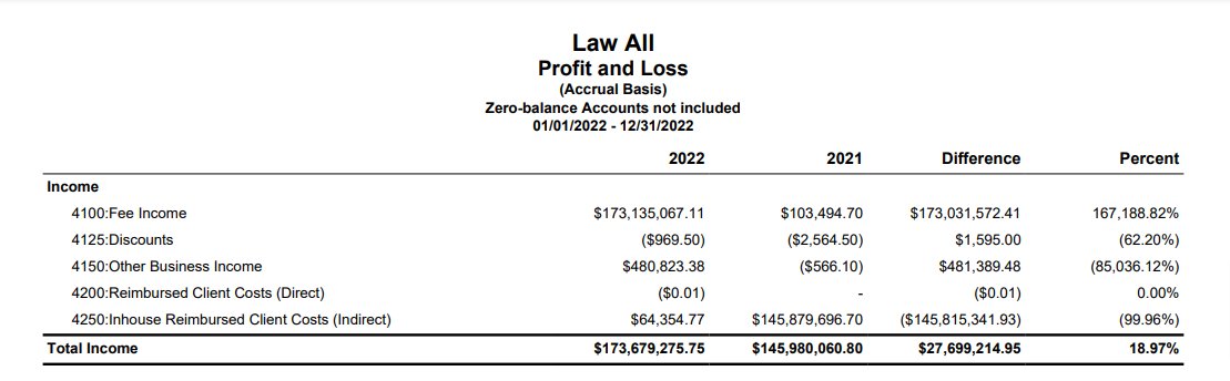 - Include prior year comparison: Checking this option will show amounts from the prior year as well and dollar and percentage difference. This is unchecked by default.
