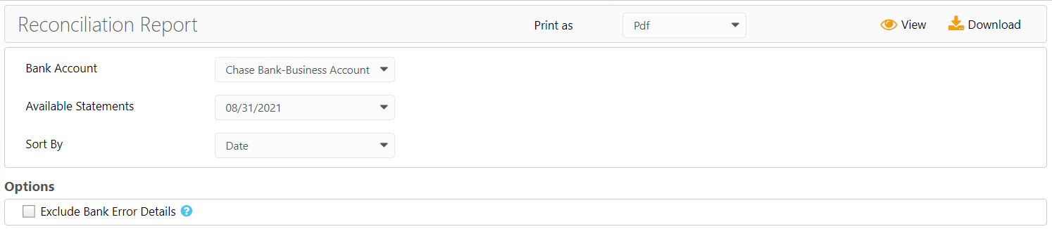 - Available Statements: Select the reconciled statement you wish to report on.