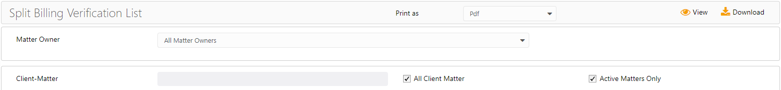 - Matter Owner: This will default to all matter owners. You can select one or more matter owners from the drop-down.
